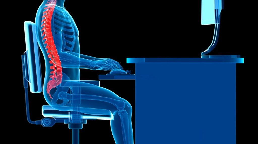 Sitting for extended periods may seem harmless, but it puts sustained pressure on your lower back, neck, shoulders, and wrists. Poor posture — such as slouching, craning the neck toward a screen, or crossing your legs — can lead to muscular imbalances, joint stiffness, and even chronic pain over time.
